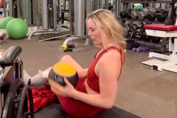 Lindsey Vonn resumes gym work four weeks after breaking leg at Olympics